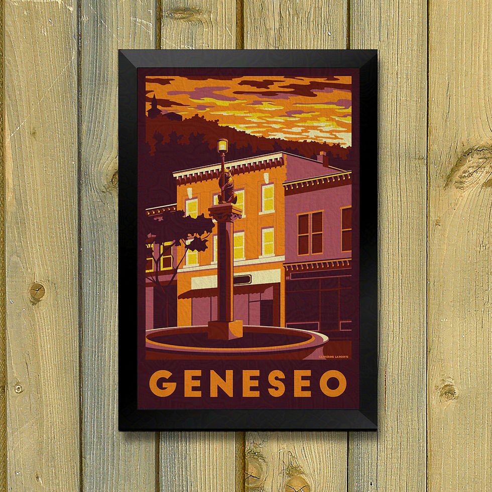 Geneseo NY Sunset Vintage Travel Poster